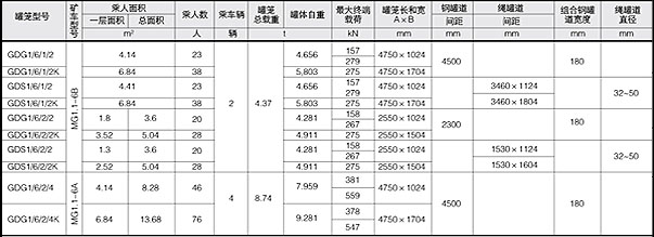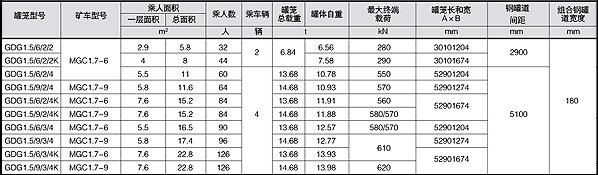 ***大載荷(t) 罐籠質(zhì)量(t) 鋼繩終端質(zhì)量(t) 首繩 直徑(mm) 尾繩 尺寸(mm) 罐籠 總高(mm) 鋼性罐道外形尺寸(mm) 鋼繩罐道(mm) 乘人數(shù)